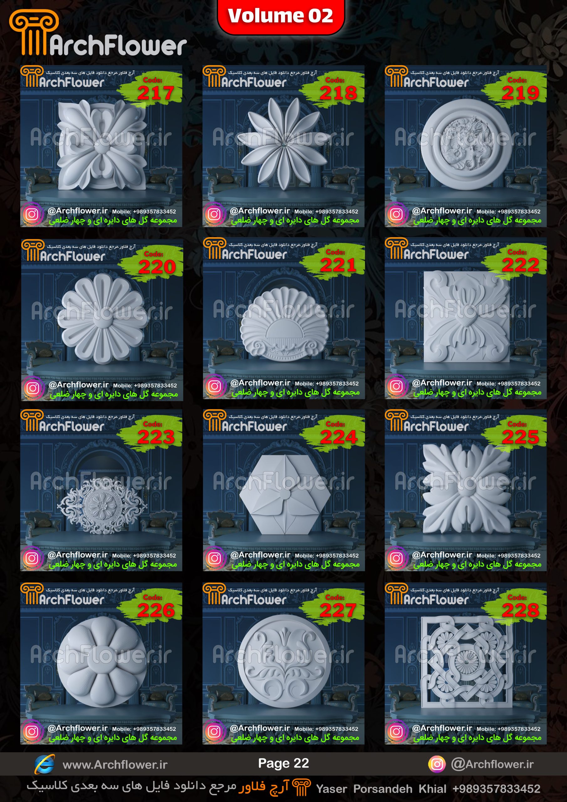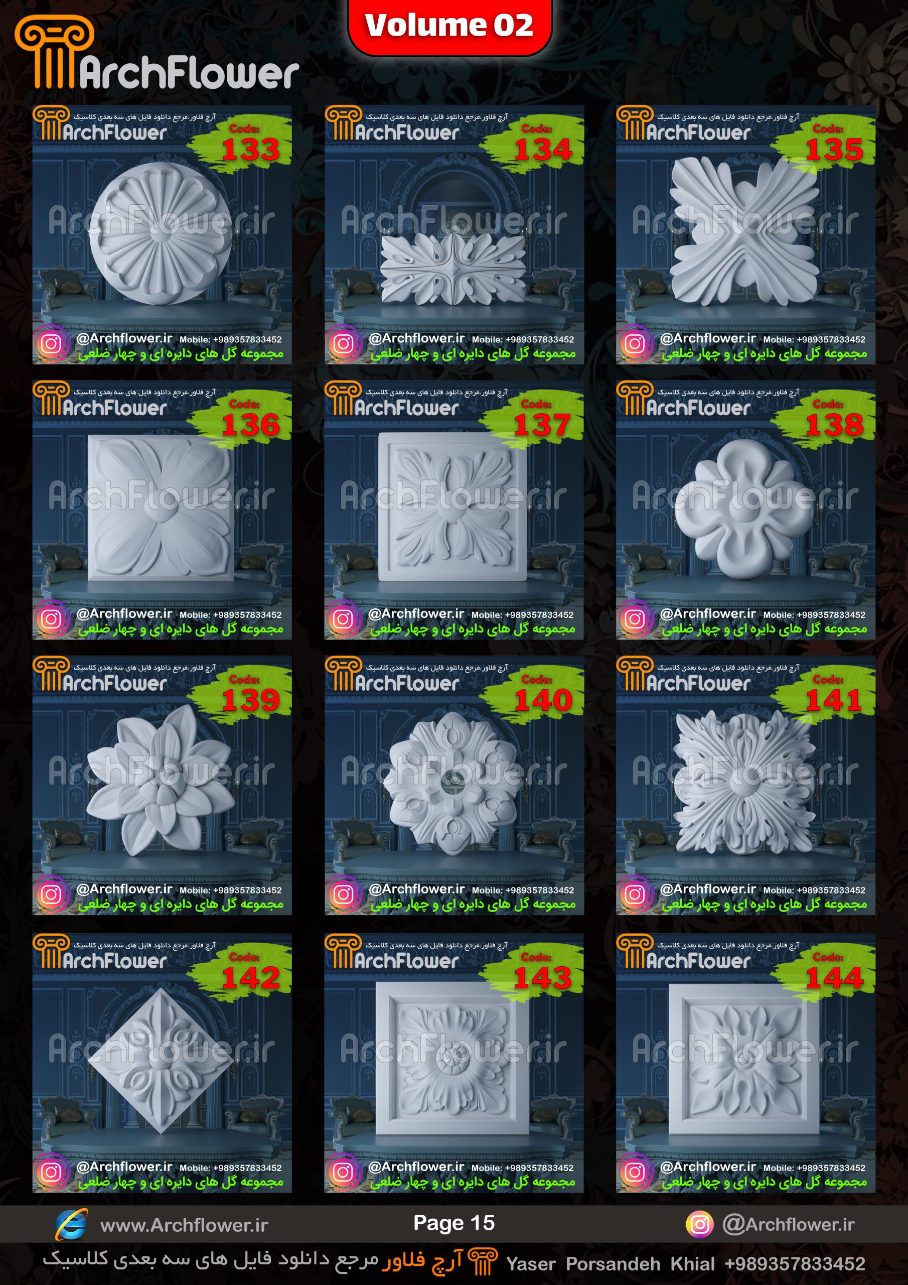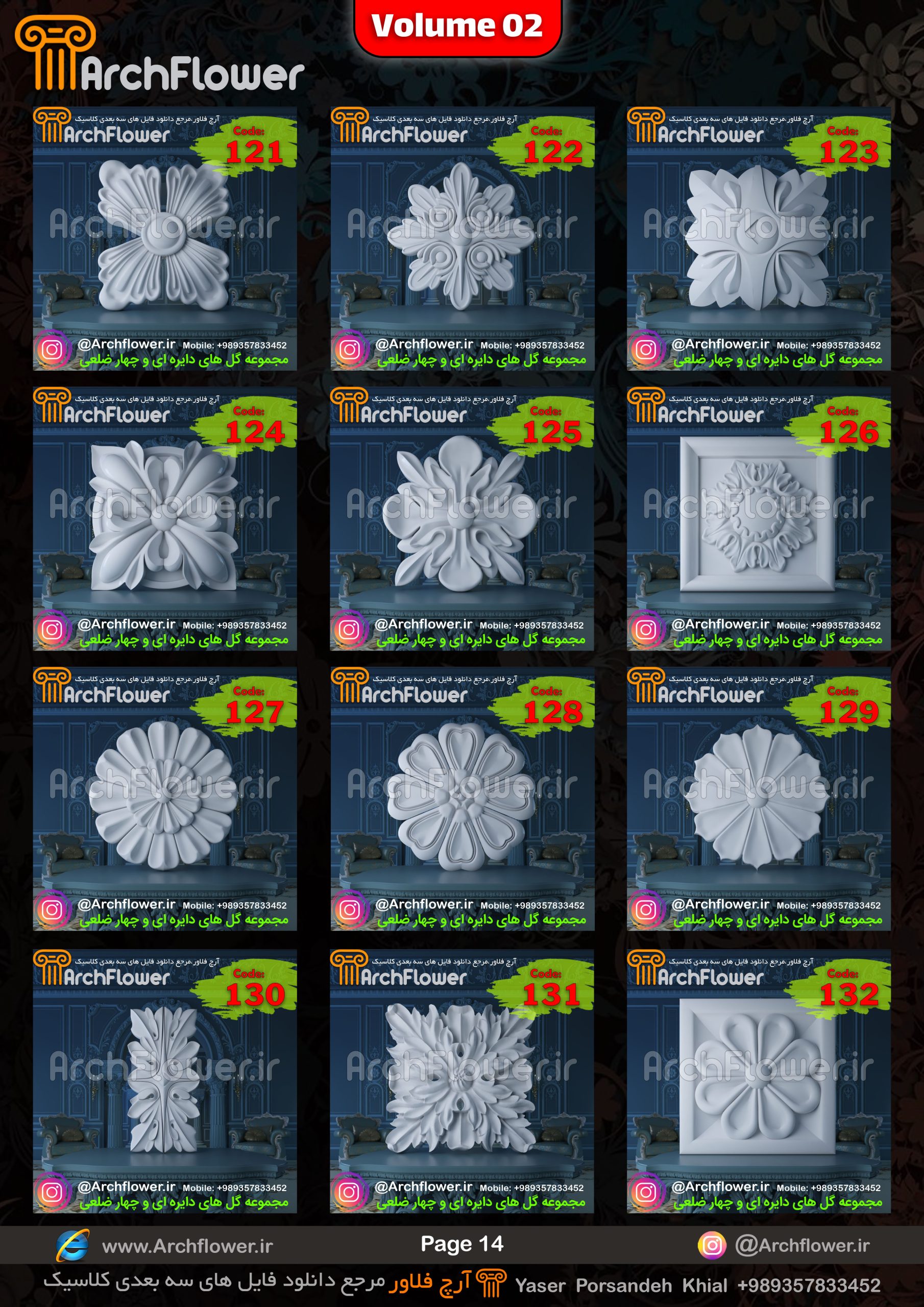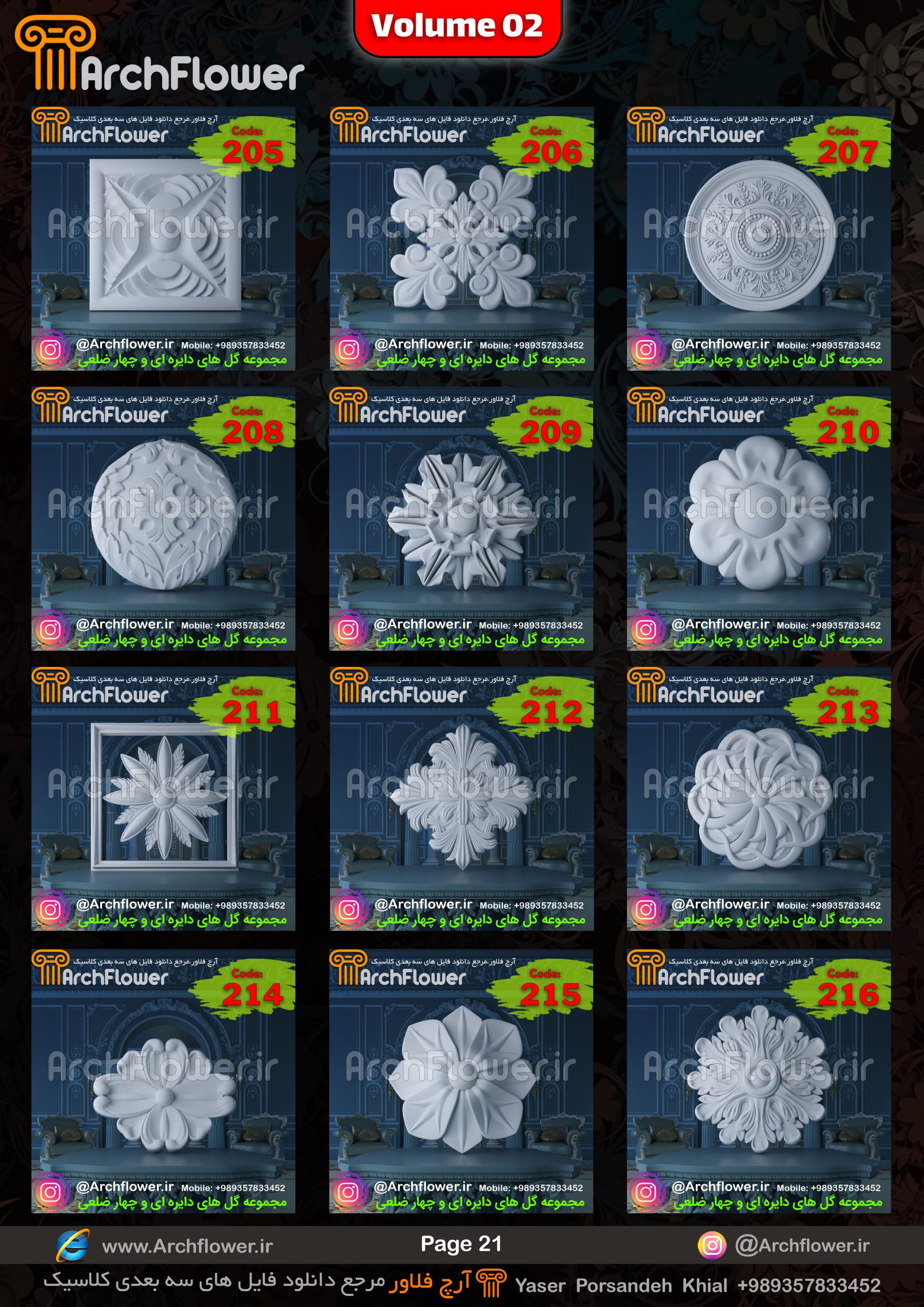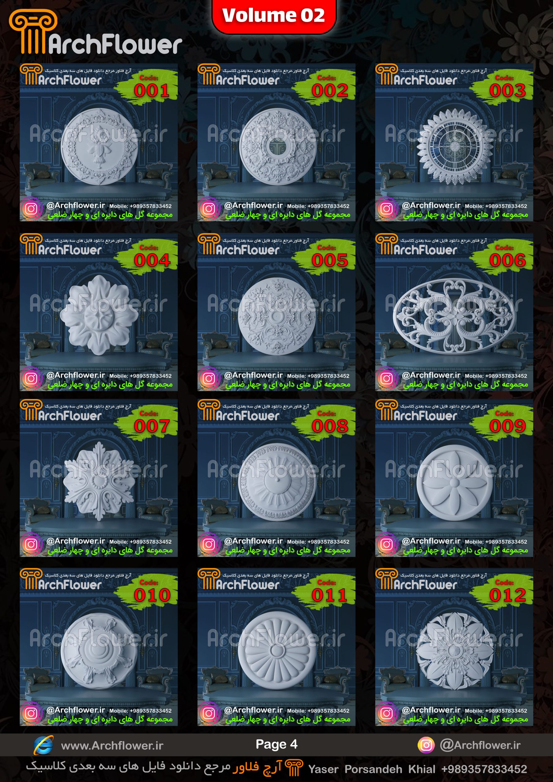 این مجموعه شامل پکیج فایل سه بعدی گل های منبت با عنوان ( فایل سه بعدی گل های منبت دایره ای و چهارضلعی : Archflower_Vol.02) میباشد که علاقمندان به طراحی پروژه های کلاسیک میتونن آبجکت های این مجموعه رو تهیه و در پروژه های کلاسیک خودشون استفاده کنن.