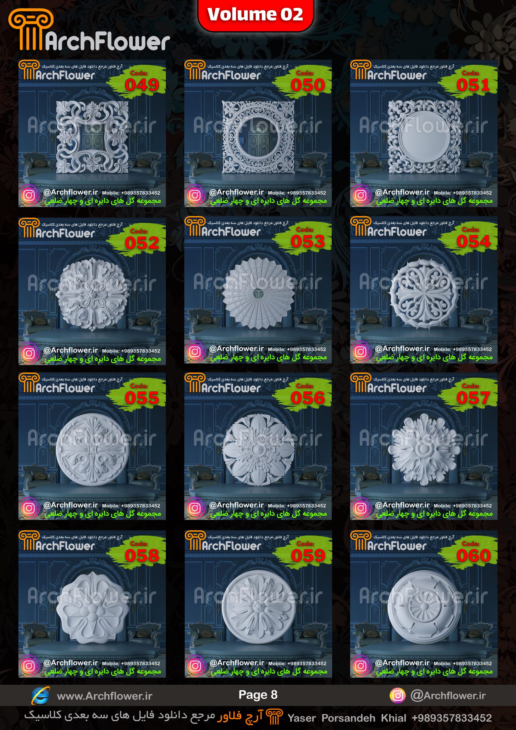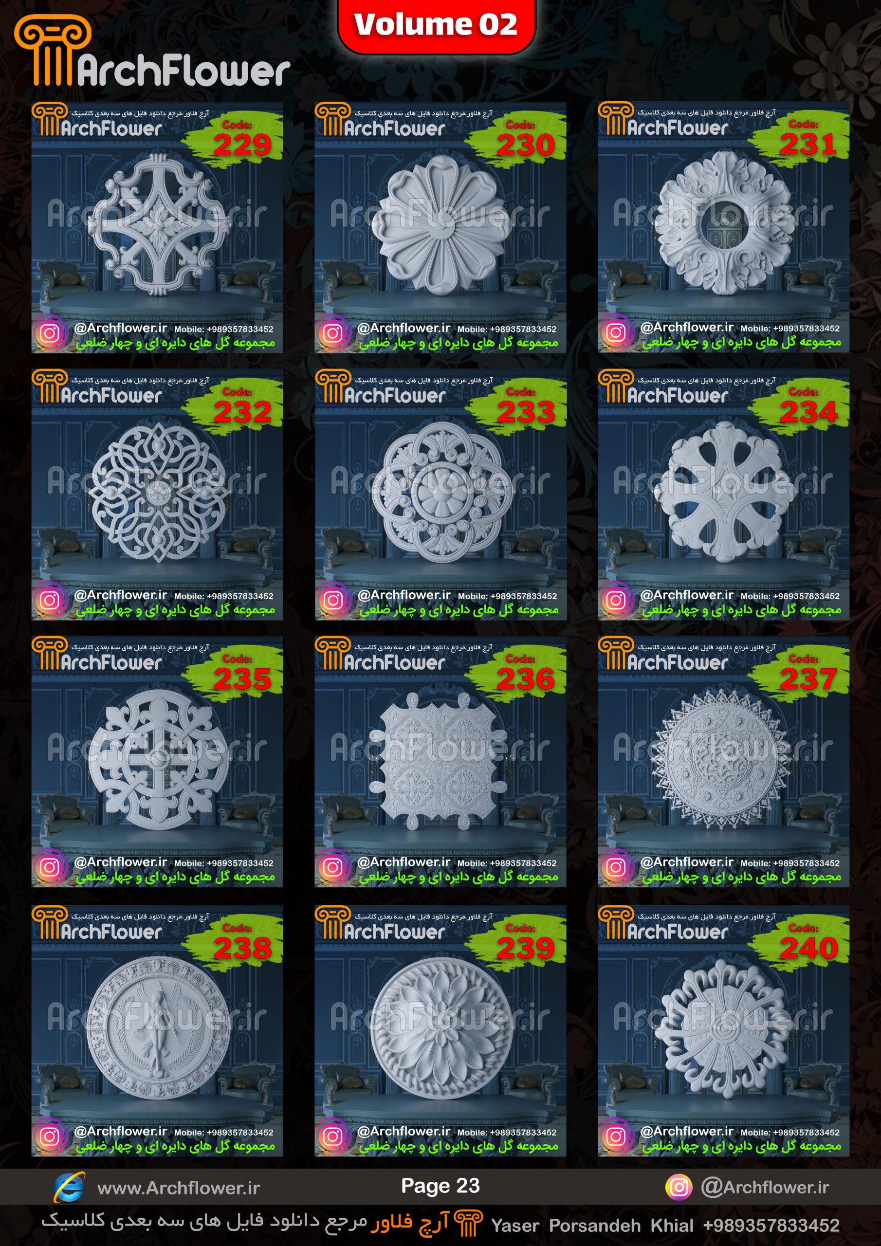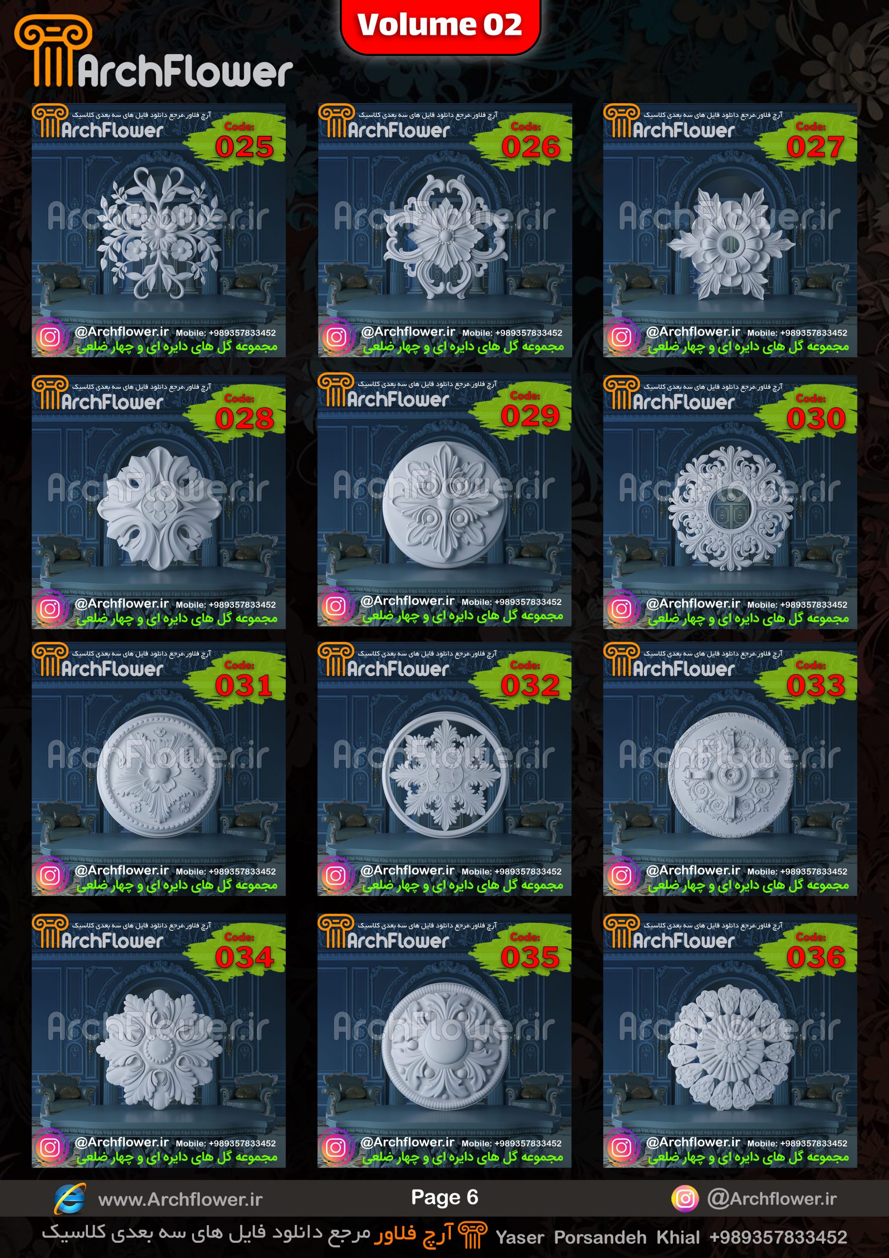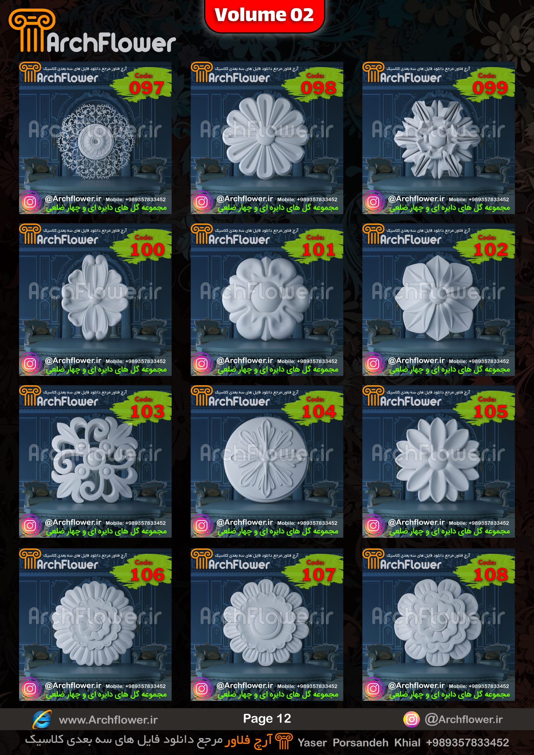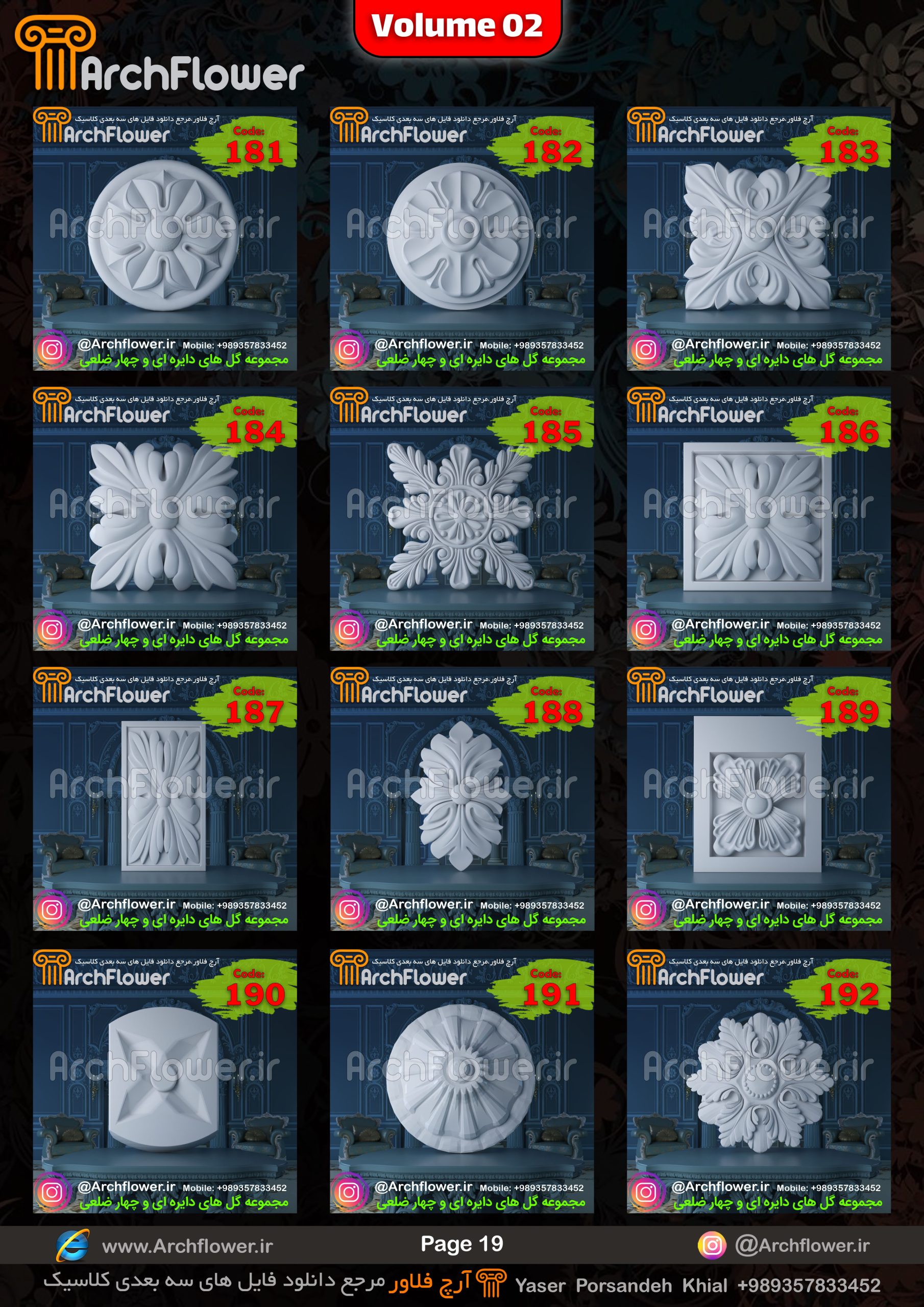 این مجموعه شامل پکیج فایل سه بعدی گل های منبت با عنوان ( فایل سه بعدی گل های منبت دایره ای و چهارضلعی : Archflower_Vol.02) میباشد که علاقمندان به طراحی پروژه های کلاسیک میتونن آبجکت های این مجموعه رو تهیه و در پروژه های کلاسیک خودشون استفاده کنن.