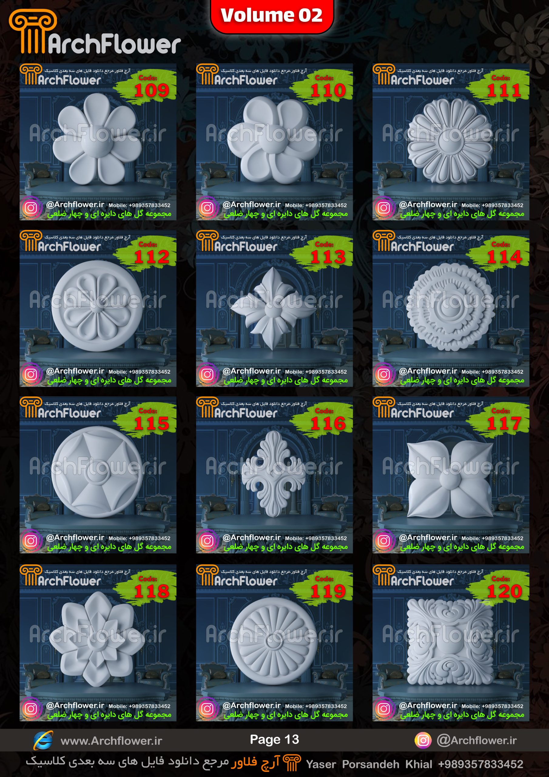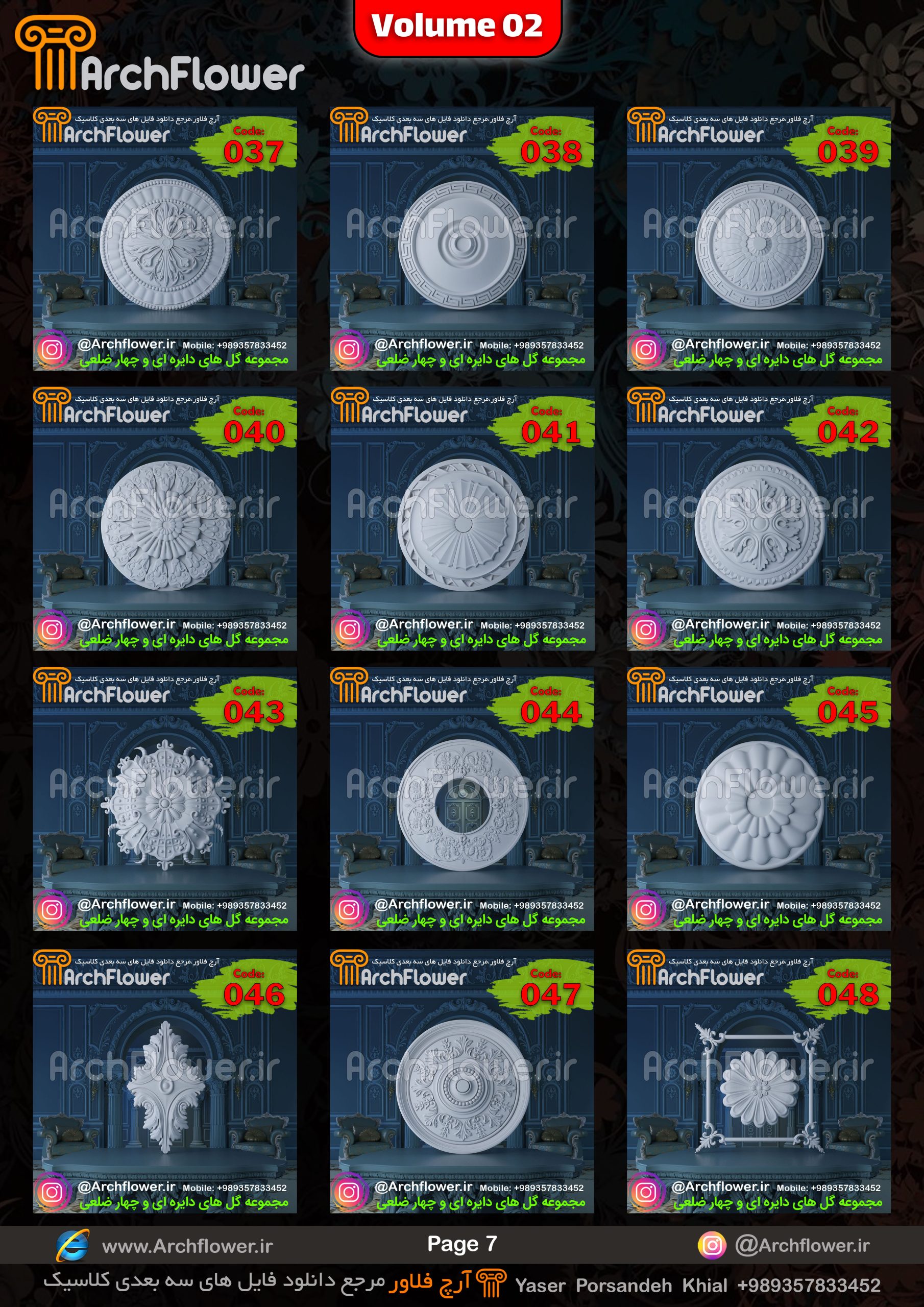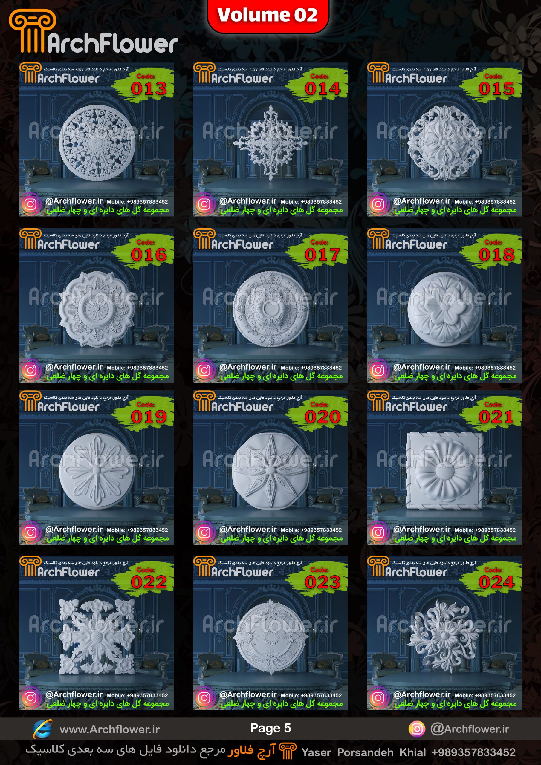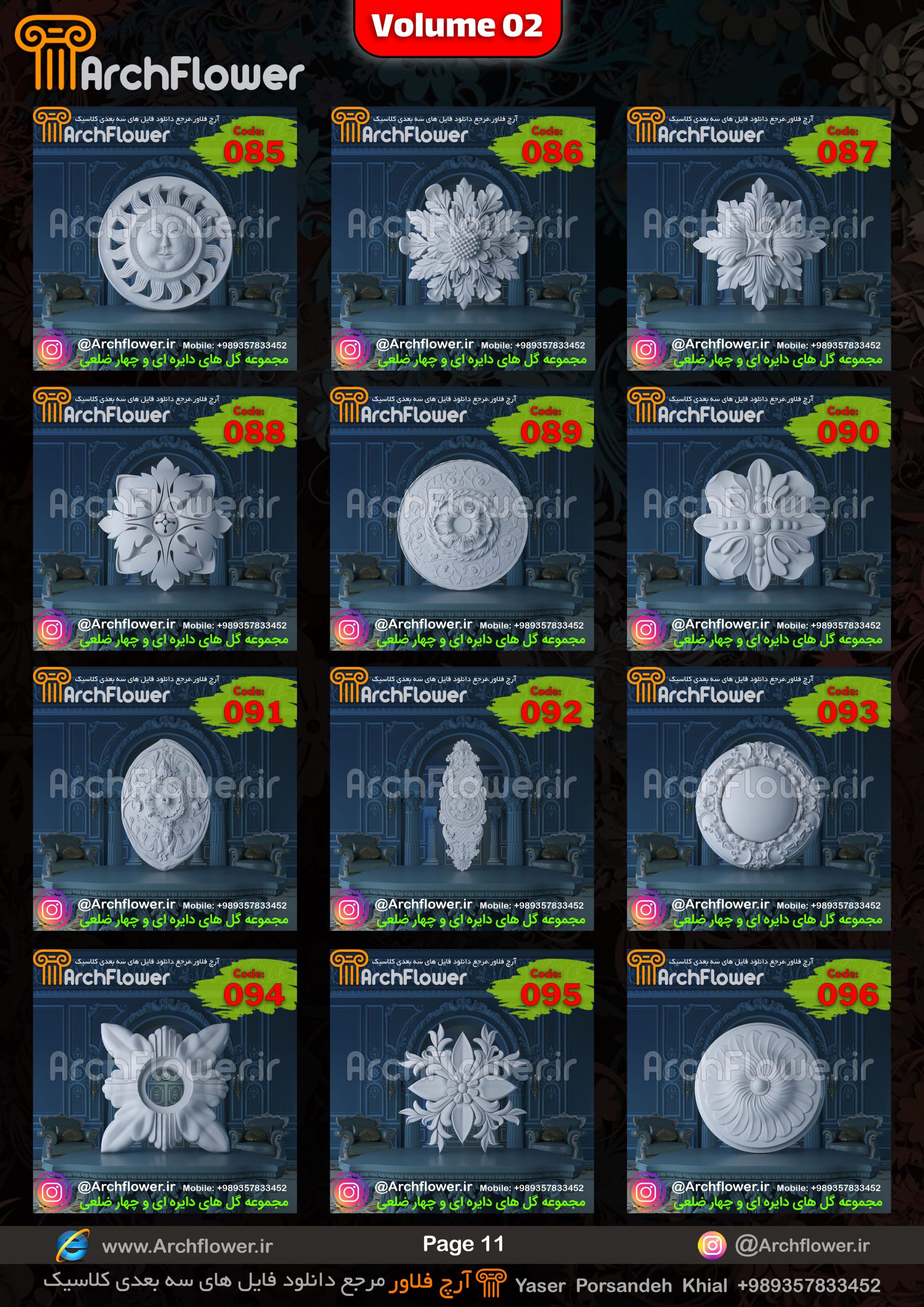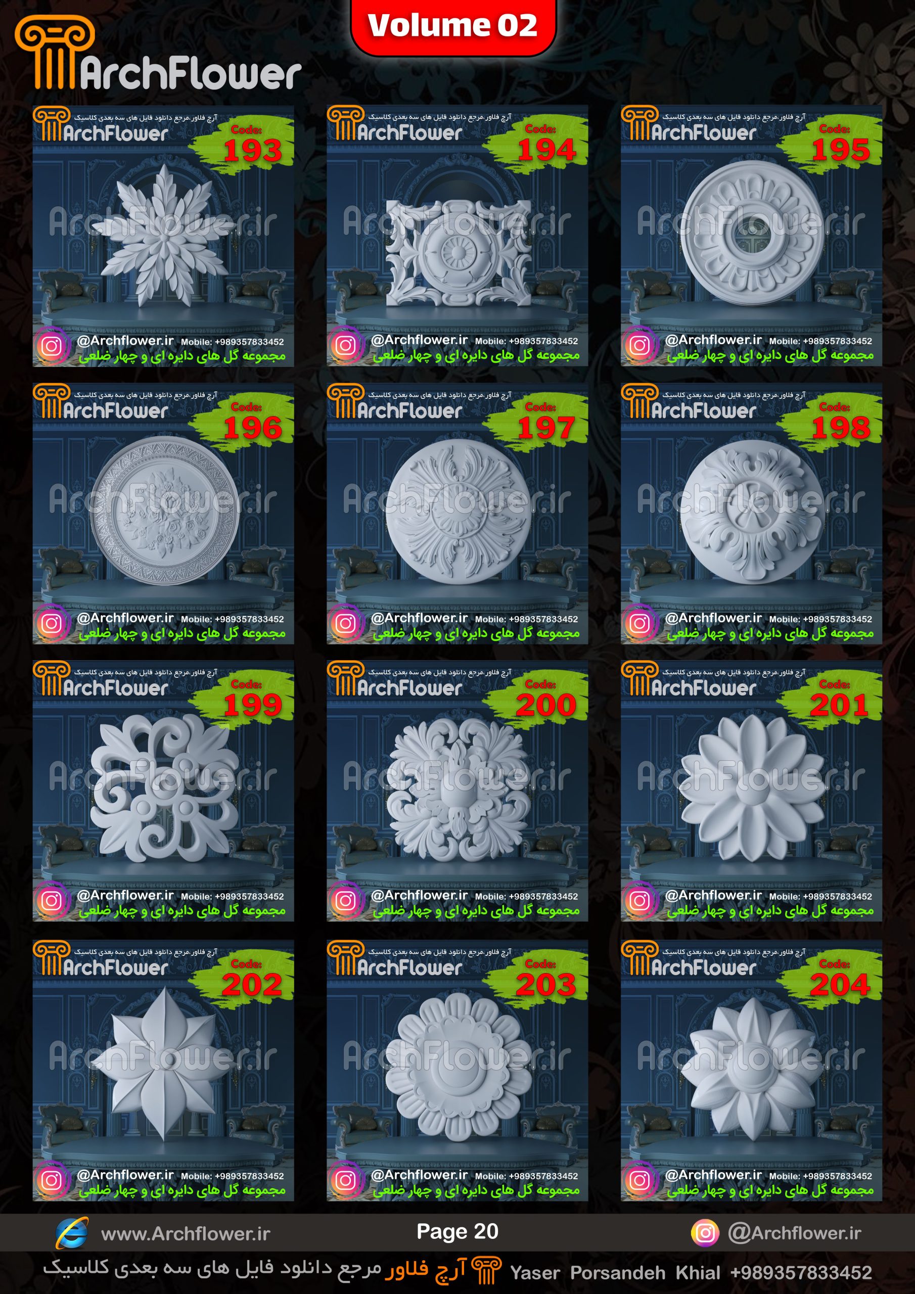 این مجموعه شامل پکیج فایل سه بعدی گل های منبت با عنوان ( فایل سه بعدی گل های منبت دایره ای و چهارضلعی : Archflower_Vol.02) میباشد که علاقمندان به طراحی پروژه های کلاسیک میتونن آبجکت های این مجموعه رو تهیه و در پروژه های کلاسیک خودشون استفاده کنن.