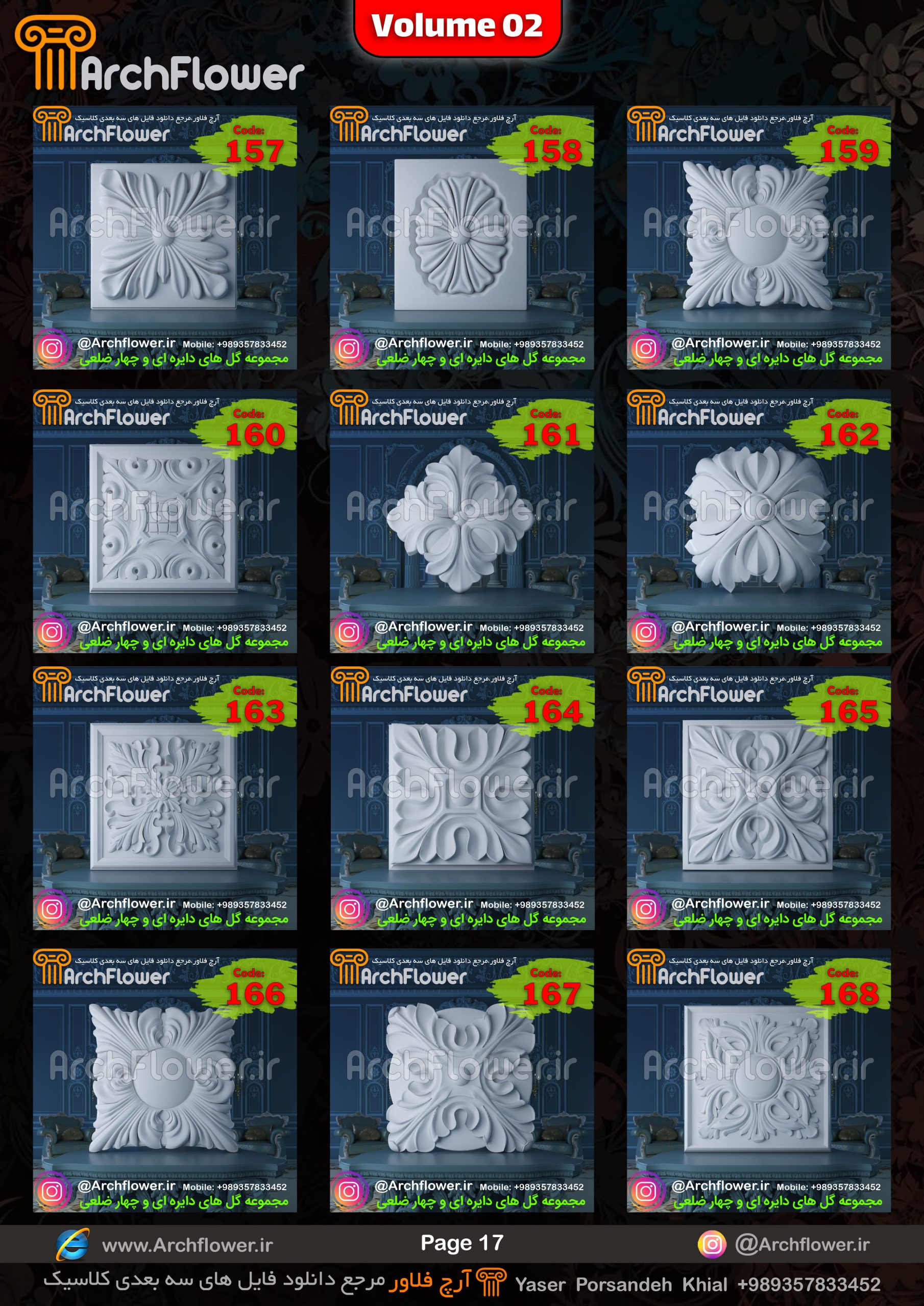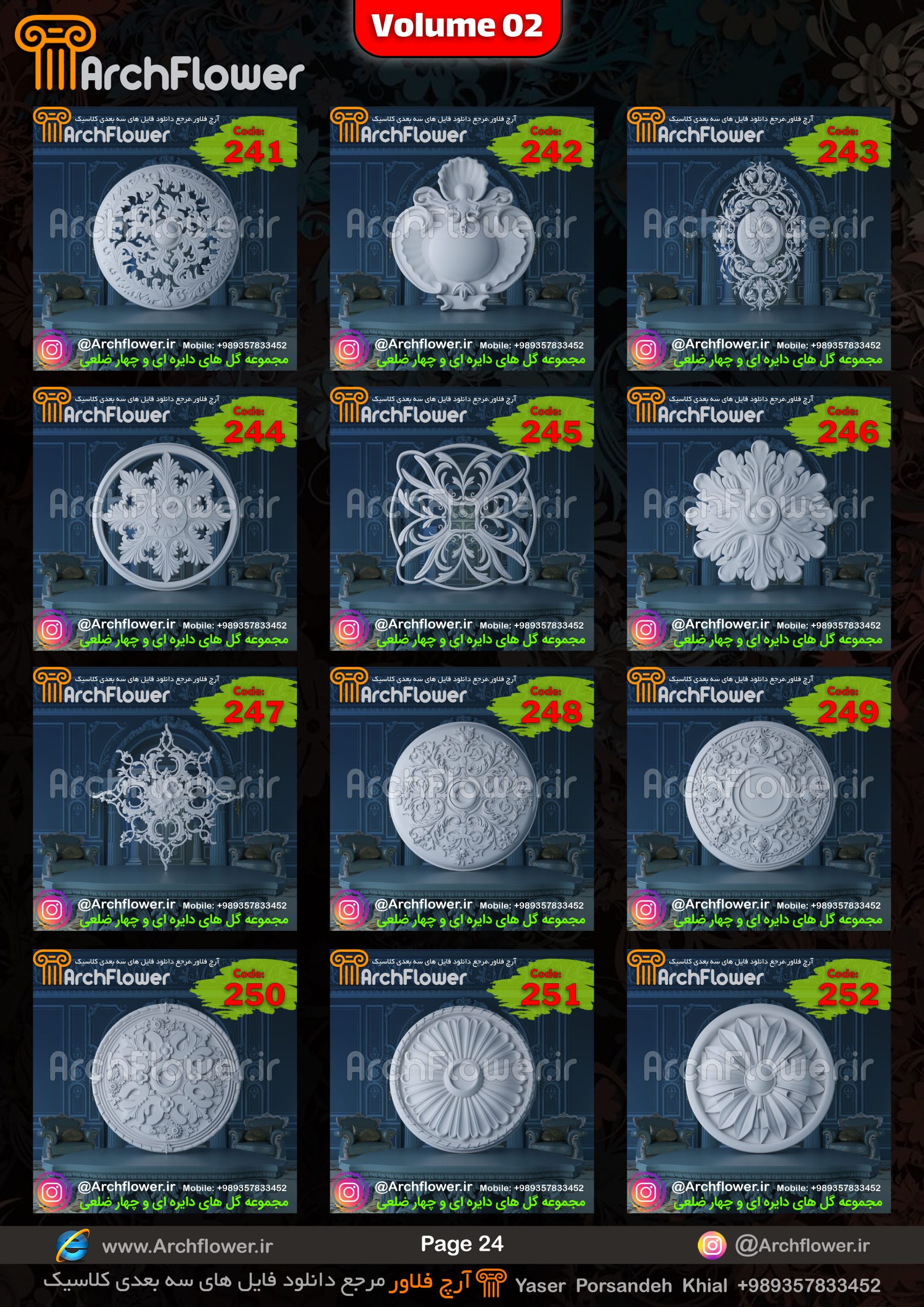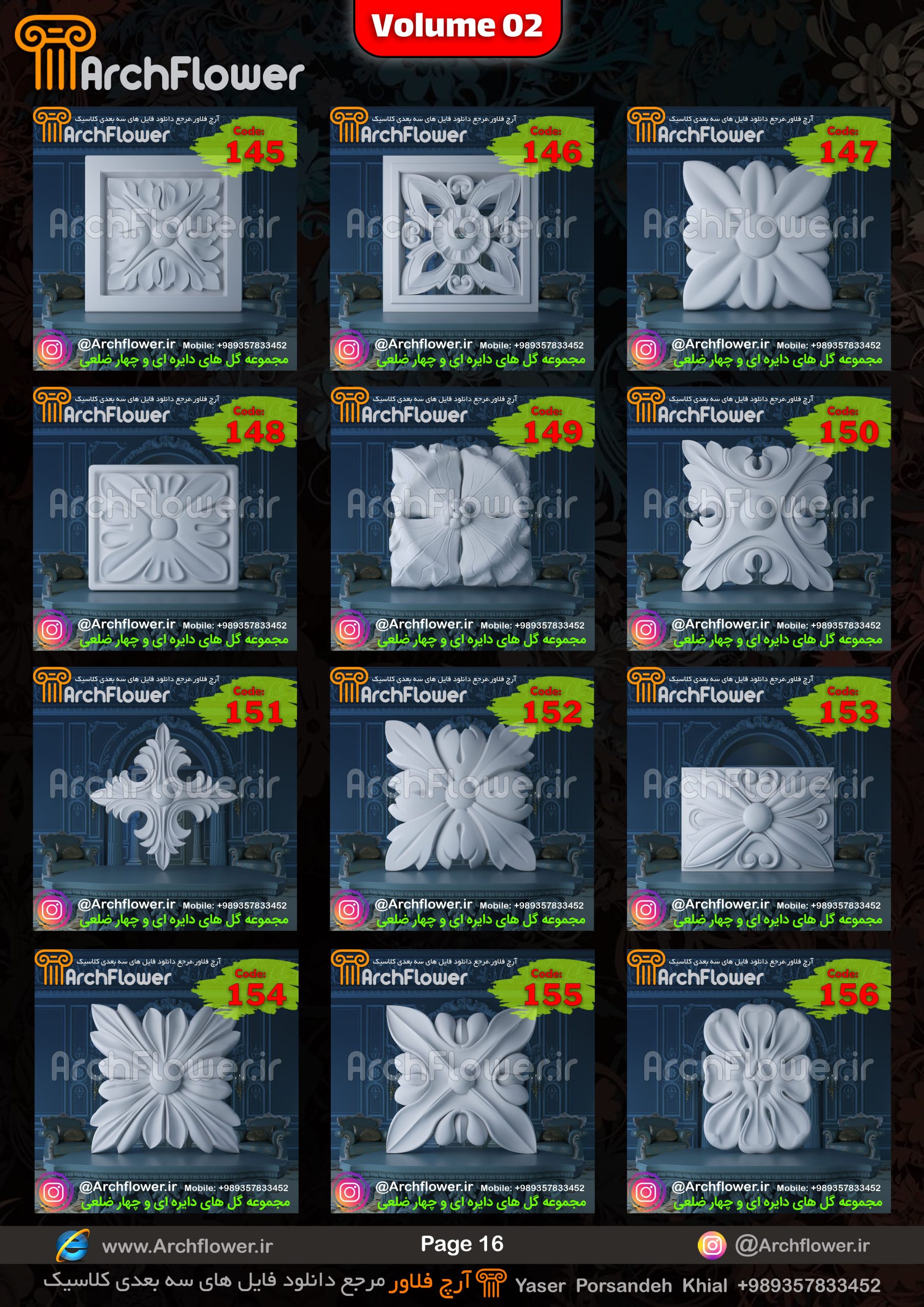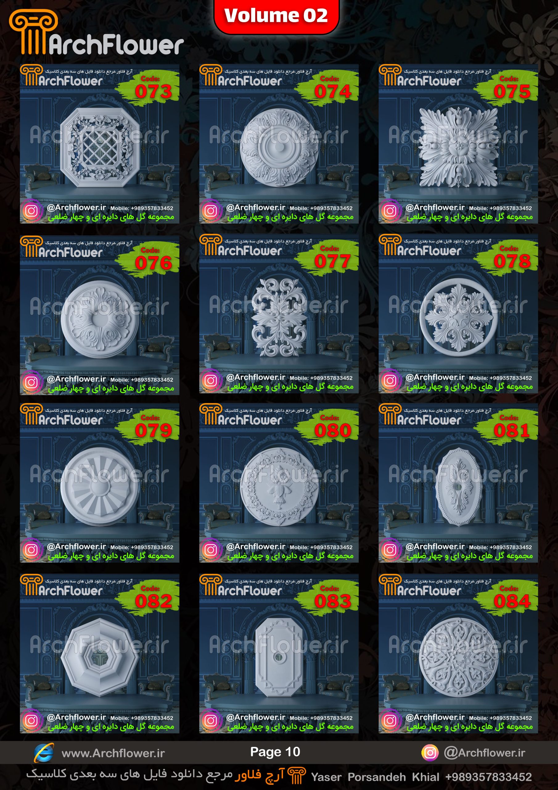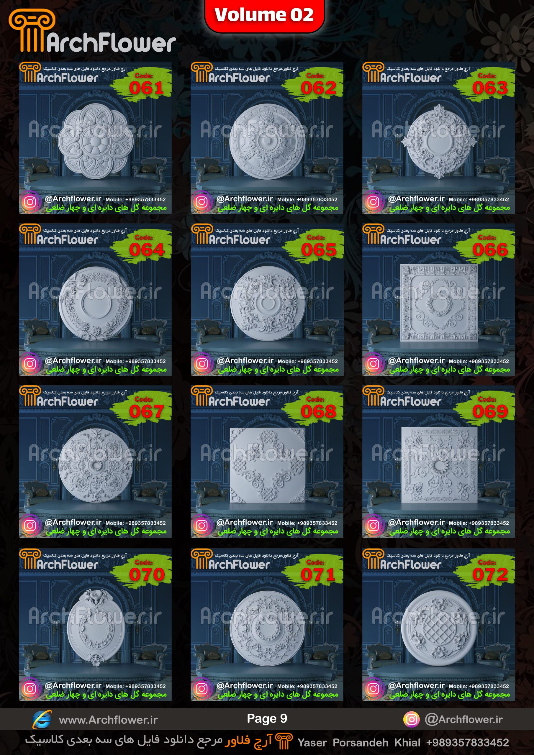 این مجموعه شامل پکیج فایل سه بعدی گل های منبت با عنوان ( فایل سه بعدی گل های منبت دایره ای و چهارضلعی : Archflower_Vol.02) میباشد که علاقمندان به طراحی پروژه های کلاسیک میتونن آبجکت های این مجموعه رو تهیه و در پروژه های کلاسیک خودشون استفاده کنن.