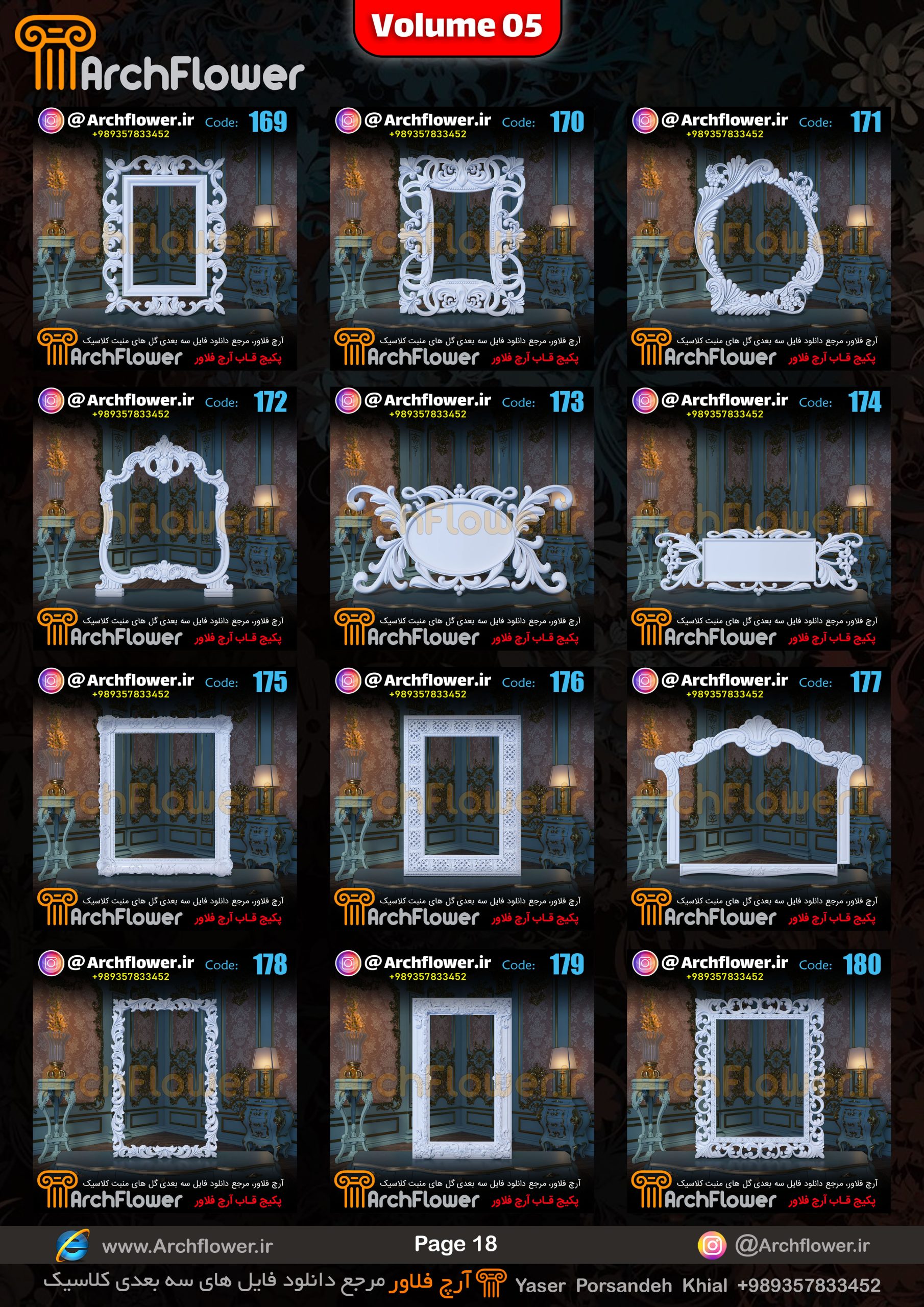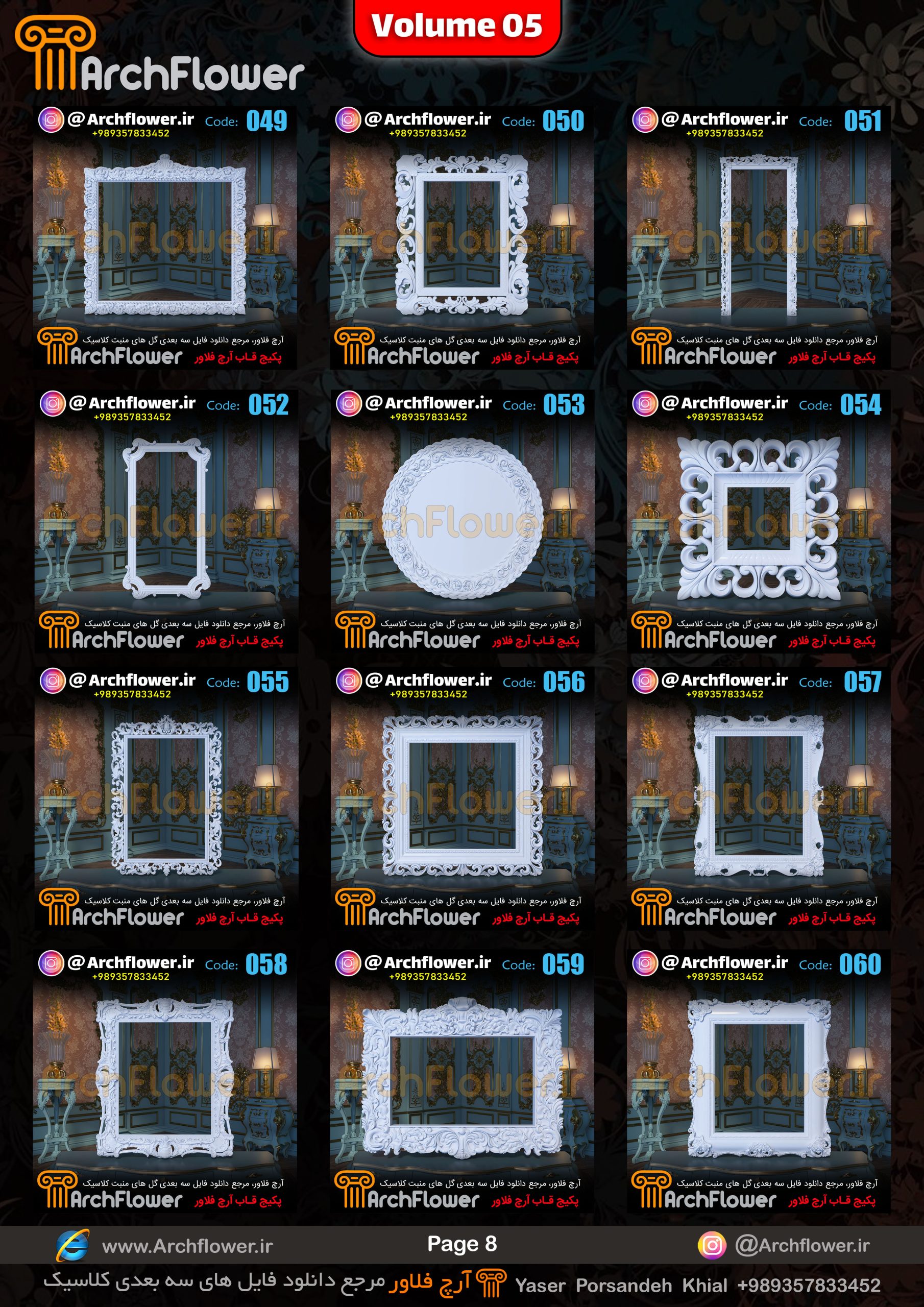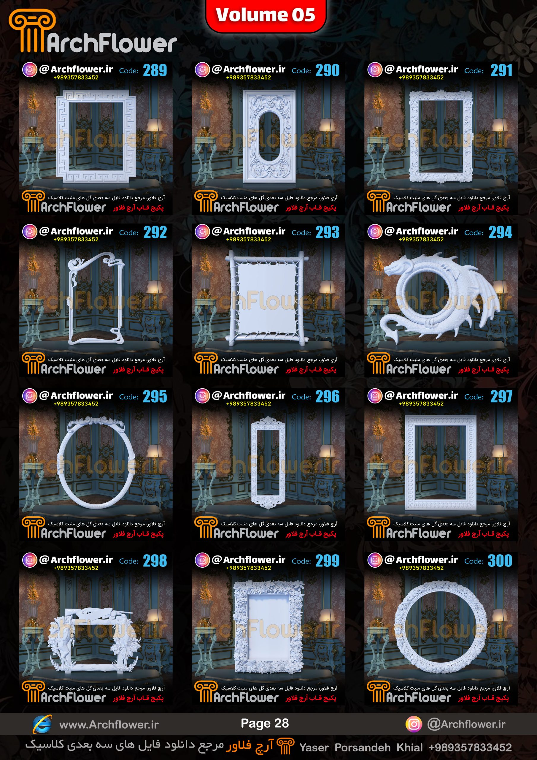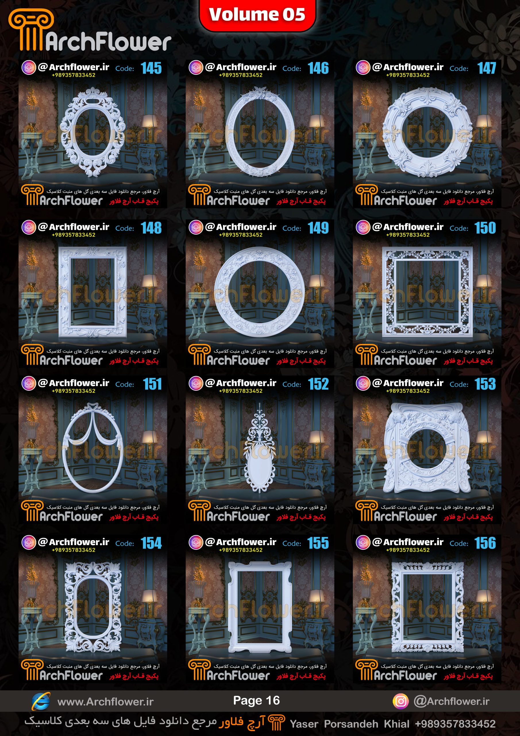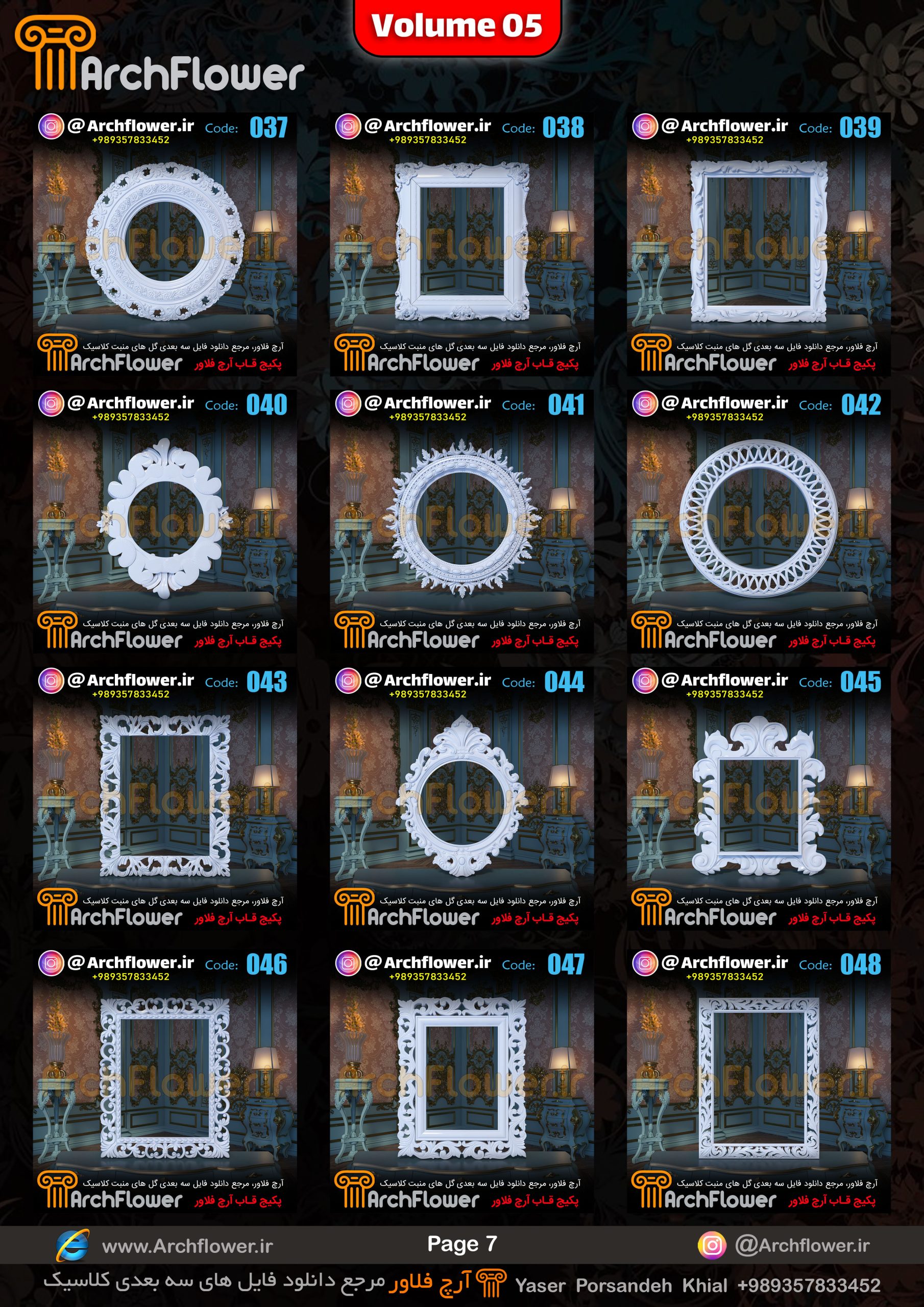 این مجموعه (قاب های کلاسیک) شامل پکیج فایل سه بعدی گل های منبت با عنوان ( فایل های سه بعدی انواع قاب های کلاسیک : Archflower_Vol.05) میباشد.علاقمندان به طراحی پروژه های کلاسیک میتونن آبجکت های این مجموعه رو تهیه کنند.و در پروژه های کلاسیک خودشون استفاده کنن.