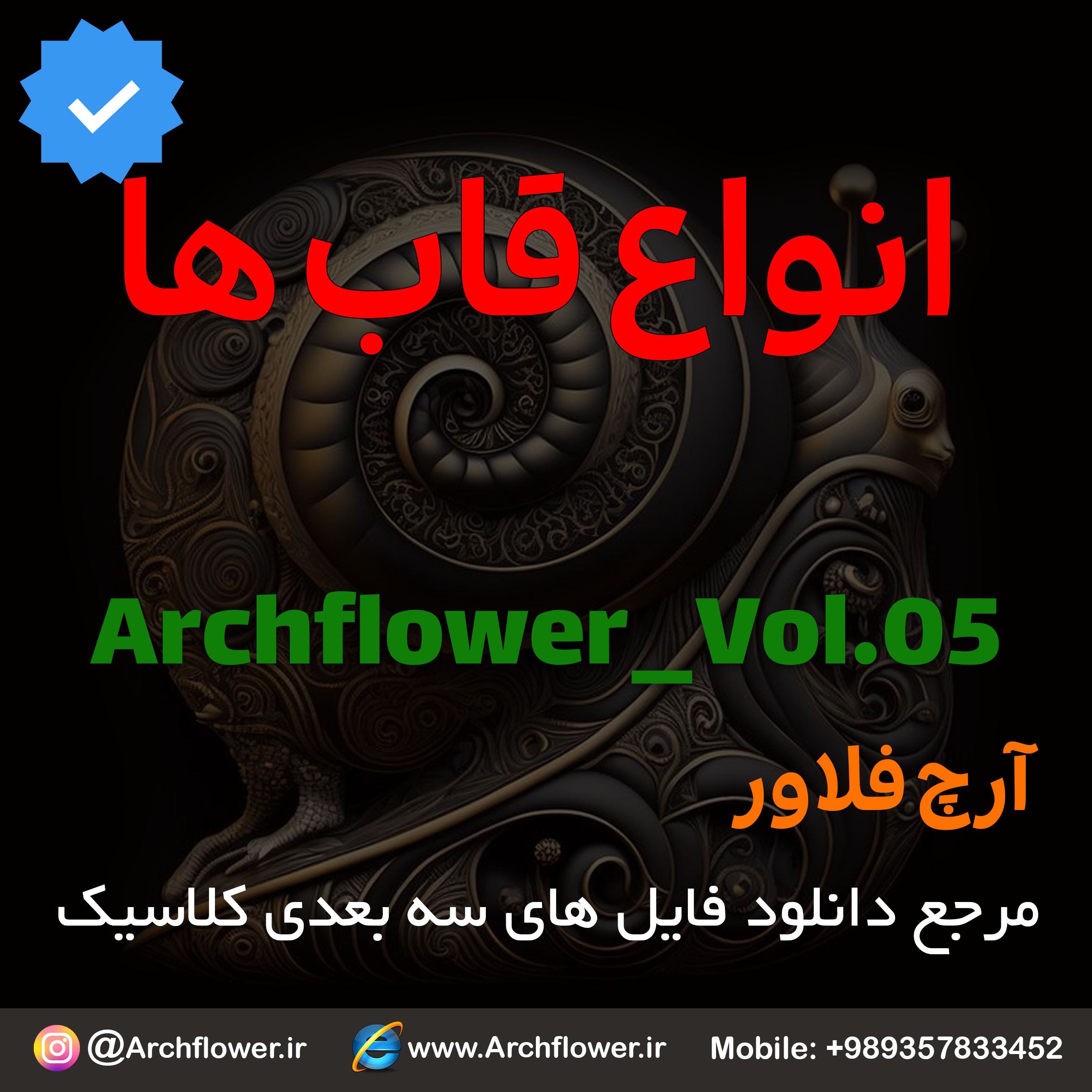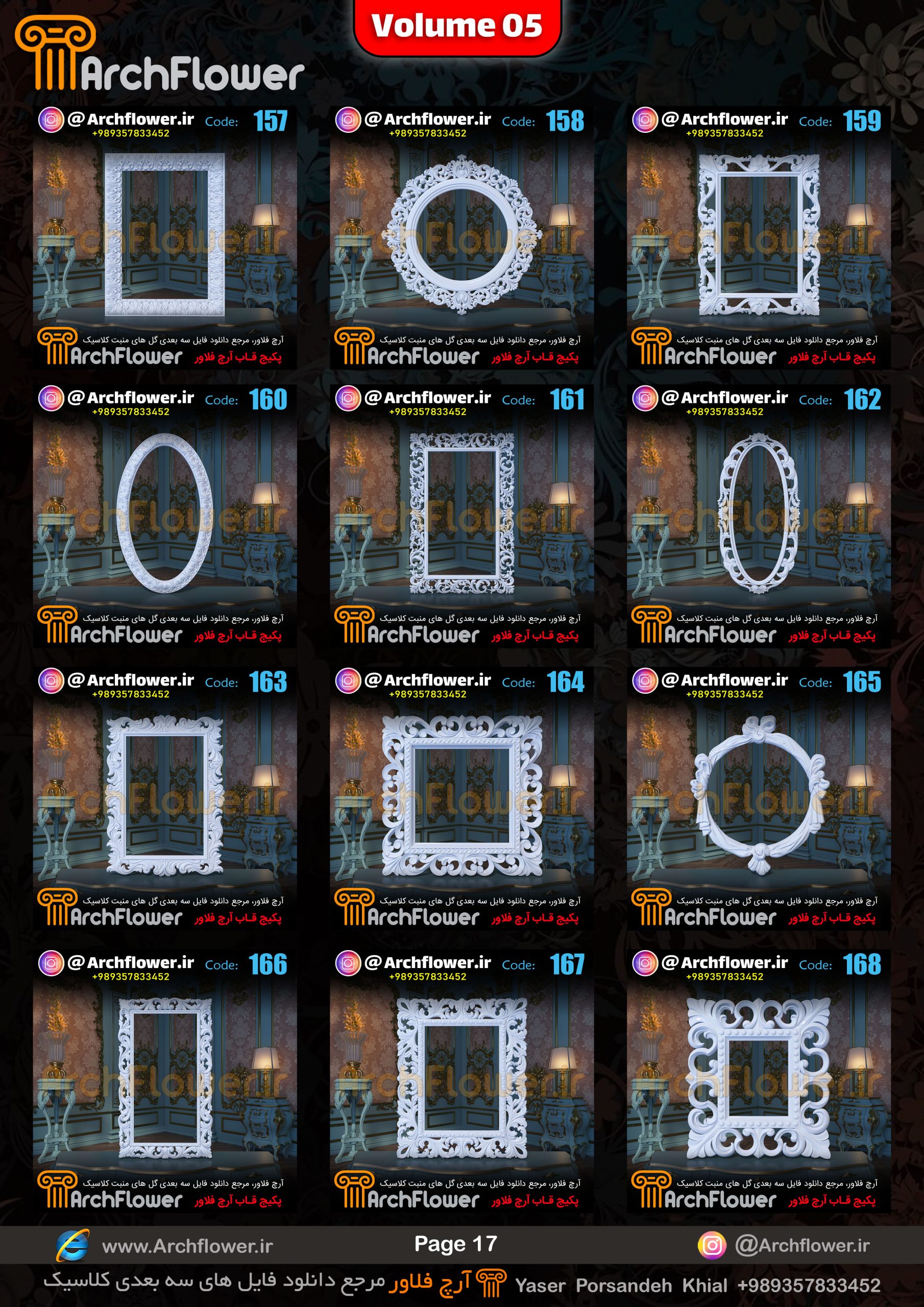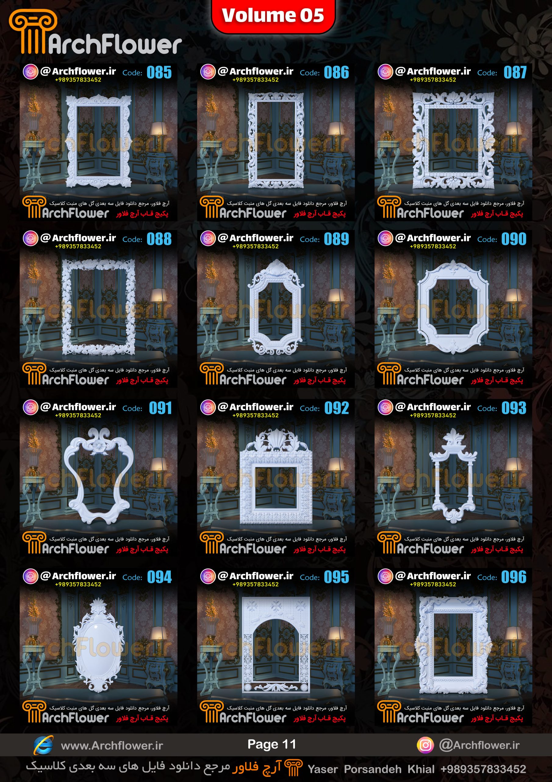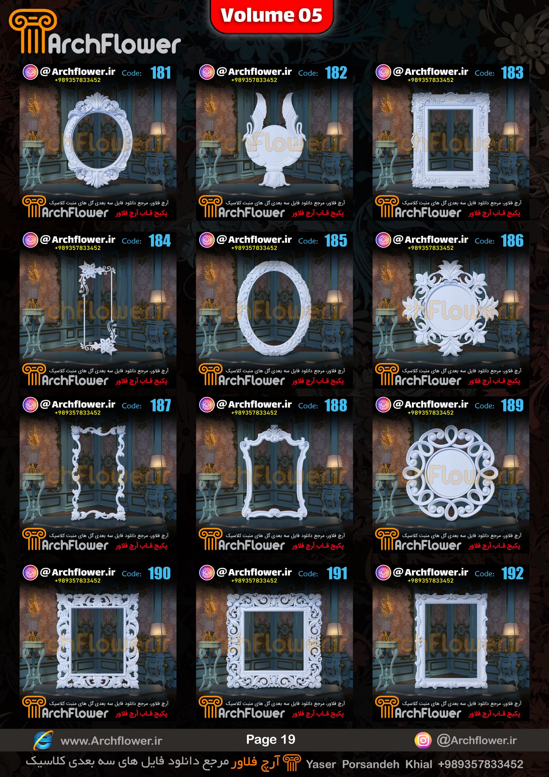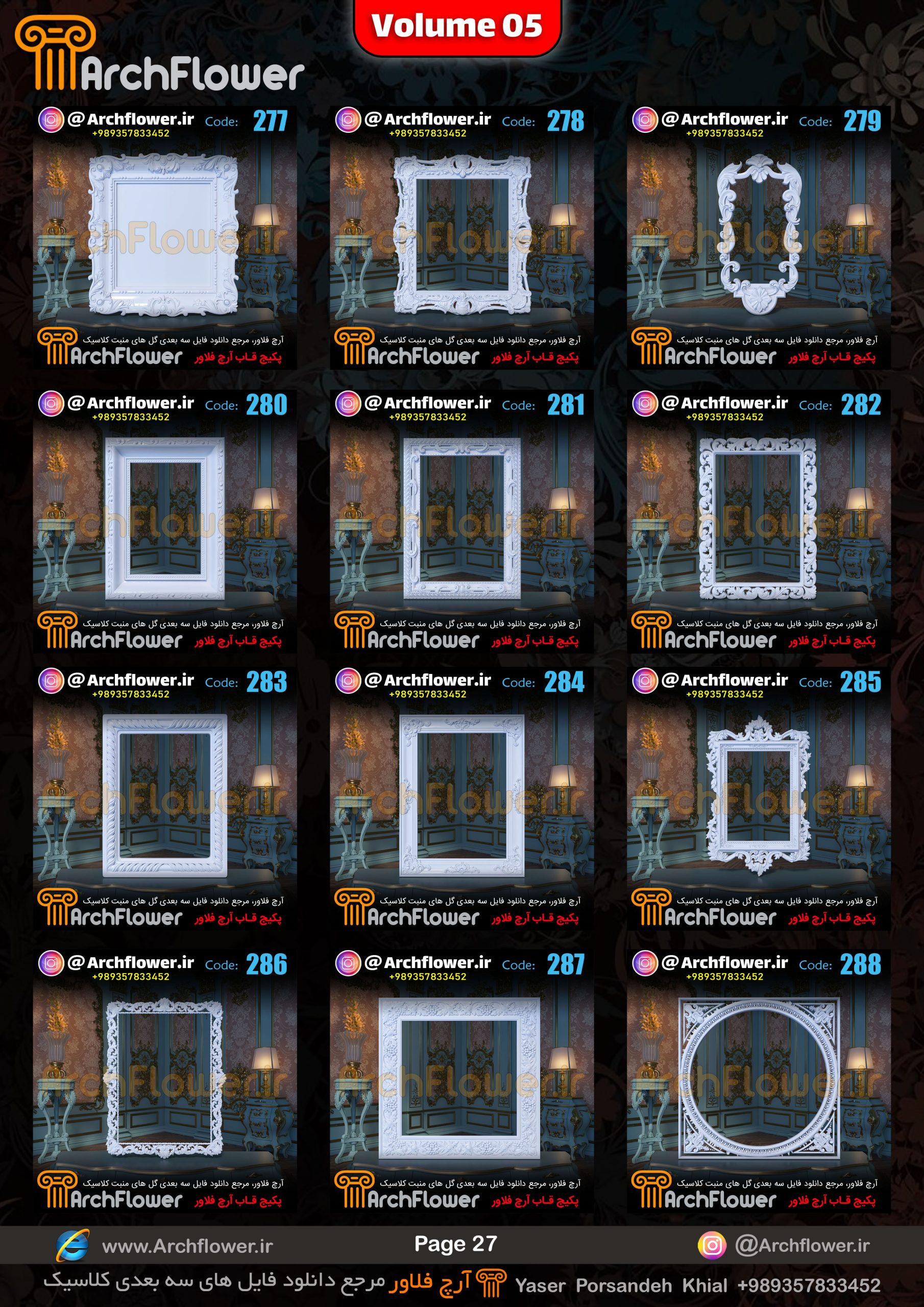 این مجموعه (قاب های کلاسیک) شامل پکیج فایل سه بعدی گل های منبت با عنوان ( فایل های سه بعدی انواع قاب های کلاسیک : Archflower_Vol.05) میباشد.علاقمندان به طراحی پروژه های کلاسیک میتونن آبجکت های این مجموعه رو تهیه کنند.و در پروژه های کلاسیک خودشون استفاده کنن.